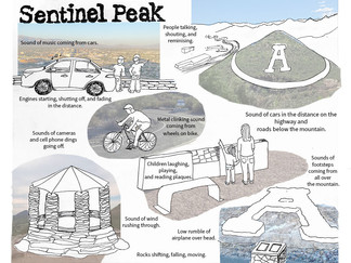 Engaging with the Sentinel Peaks sounds shaped my understandings of its social and historical attributes. I became aware of how our present-day sounds filled this auditory landscape, muffling those of the past. The atmosphere being filled with modern-day cars, bikes, cellphone clicks, and music overshadows what this place once was. This was part of the challenge in making this sound map. This struggle shows the tension between urban development and preservation of historical narratives. However, the space itself is a true testament to the resilience of the past.